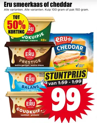 Eru smeerkaas of cheddar Alle varianten Kuip 100 gram of pak 150 gram TOT 50% KORTING