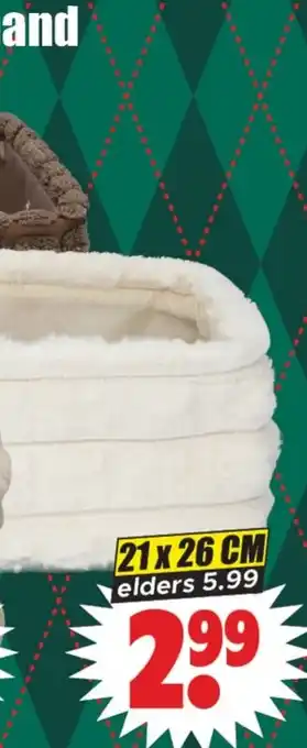 De prijs van de Fake fur of teddy opbergmand kan ook teruggevonden worden hierboven op de pagina, samen met de datum van wanneer de aanbieding beschikbaar is. Ook kun je de prijzen in de huidige Dirk folder of op de Dirk website controleren. De aanbiedingen verzekeren je van het kopen van de Dirk producten voor de laagste prijs.