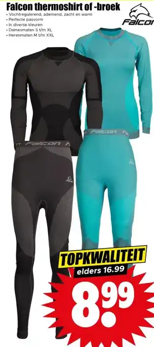 Nu in de aanbieding bij Dirk: Falcon thermoshirt of -broek✅ Actie geldig van 28-12 t/m 3-01.