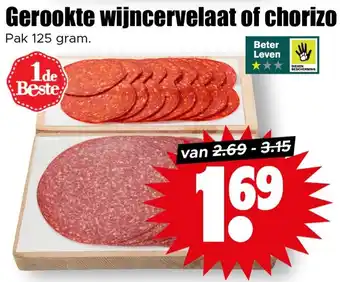 De prijs van de Gerookte wijncervelaat of chorizo kan ook teruggevonden worden hierboven op de pagina, samen met de datum van wanneer de aanbieding beschikbaar is. Ook kun je de prijzen in de huidige Dirk folder of op de Dirk website controleren. De aanbiedingen verzekeren je van het kopen van de Dirk producten voor de laagste prijs.