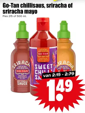 Go-Tan chillisaus, sriracha of sriracha mayo korting bij Dirk