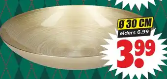 Nu in de aanbieding bij Dirk: Goudkleurige glazen schaal✅ Actie geldig van 21-12 t/m 27-12.