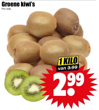 De prijs van de Groene kiwi's kan ook teruggevonden worden hierboven op de pagina, samen met de datum van wanneer de aanbieding beschikbaar is. Ook kun je de prijzen in de huidige Dirk folder of op de Dirk website controleren. De aanbiedingen verzekeren je van het kopen van de Dirk producten voor de laagste prijs.