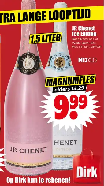 De prijs van de JP. Chenet Ice Edition kan ook teruggevonden worden hierboven op de pagina, samen met de datum van wanneer de aanbieding beschikbaar is. Ook kun je de prijzen in de huidige Dirk folder of op de Dirk website controleren. De aanbiedingen verzekeren je van het kopen van de Dirk producten voor de laagste prijs.