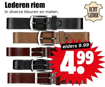 De prijs van de Lederen riem kan ook teruggevonden worden hierboven op de pagina, samen met de datum van wanneer de aanbieding beschikbaar is. Ook kun je de prijzen in de huidige Dirk folder of op de Dirk website controleren. De aanbiedingen verzekeren je van het kopen van de Dirk producten voor de laagste prijs.