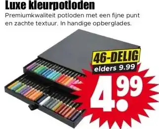 De prijs van de Luxe kleurpotloden kan ook teruggevonden worden hierboven op de pagina, samen met de datum van wanneer de aanbieding beschikbaar is. Ook kun je de prijzen in de huidige Dirk folder of op de Dirk website controleren. De aanbiedingen verzekeren je van het kopen van de Dirk producten voor de laagste prijs.