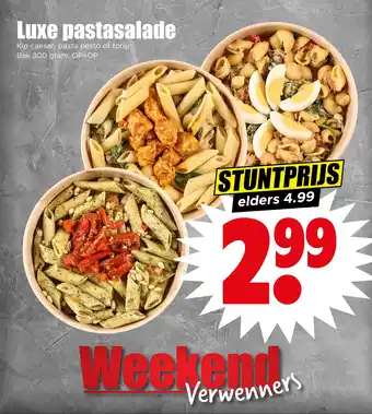 De prijs van de Luxe Pastasalade kan ook teruggevonden worden hierboven op de pagina, samen met de datum van wanneer de aanbieding beschikbaar is. Ook kun je de prijzen in de huidige Dirk folder of op de Dirk website controleren. De aanbiedingen verzekeren je van het kopen van de Dirk producten voor de laagste prijs.