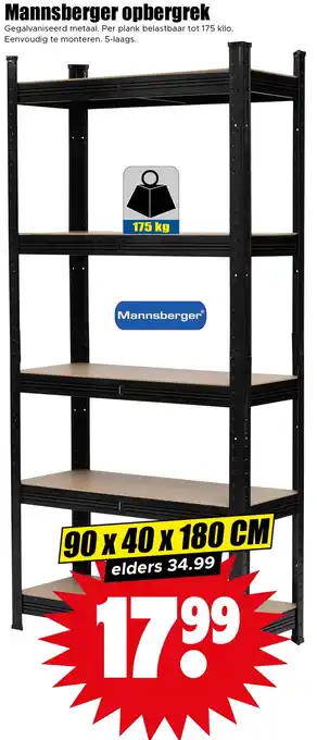 De prijs van de Mannsberger opbergrek kan ook teruggevonden worden hierboven op de pagina, samen met de datum van wanneer de aanbieding beschikbaar is. Ook kun je de prijzen in de huidige Dirk folder of op de Dirk website controleren. De aanbiedingen verzekeren je van het kopen van de Dirk producten voor de laagste prijs.