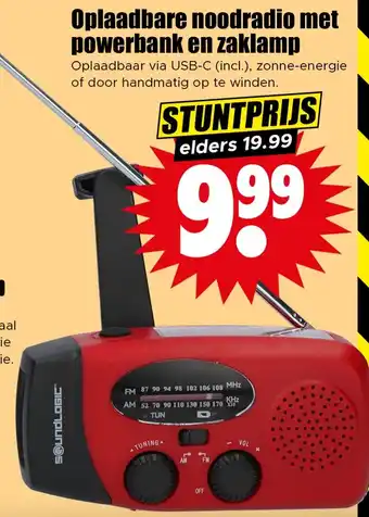 Oplaadbare noodradio met powerbank en zaklamp aanbieding bij Dirk