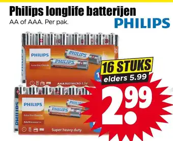 De prijs van de Philips longlife batterijen kan ook teruggevonden worden hierboven op de pagina, samen met de datum van wanneer de aanbieding beschikbaar is. Ook kun je de prijzen in de huidige Dirk folder of op de Dirk website controleren. De aanbiedingen verzekeren je van het kopen van de Dirk producten voor de laagste prijs.