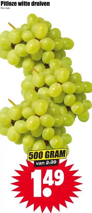 Pitloze witte druiven 500 GRAM van 2.39 voor 1.49 Per bak.