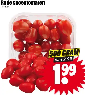 Rode snoeptomaten 500 GRAM van 1.99 Per bak.