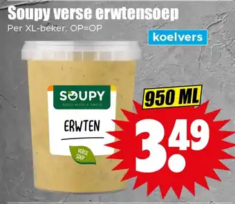 De prijs van de Soupy verse erwtensoep kan ook teruggevonden worden hierboven op de pagina, samen met de datum van wanneer de aanbieding beschikbaar is. Ook kun je de prijzen in de huidige Dirk folder of op de Dirk website controleren. De aanbiedingen verzekeren je van het kopen van de Dirk producten voor de laagste prijs.