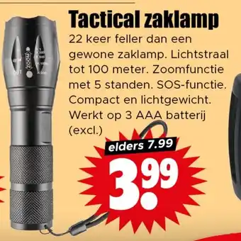 De Tactical zaklamp is momenteel met korting verkrijgbaar bij Dirk. Hier vind je alle details over prijs, geldigheidsduur en actievoorwaarden. Vergeet niet om ook andere aanbiedingen en deals voor Tactical zaklamp te bekijken zodat je zeker weet dat je de beste prijs betaalt. De kortingsactie loopt van 04-01-2026 tot 10-01-2026. Is de actie inmiddels verlopen? Geen zorgen, vergelijk dan soortgelijke aanbiedingen of volg de productcategorie voor toekomstige prijsverlagingen. Zo koop je altijd met voordeel.Veelgestelde vragen over Tactical zaklamp