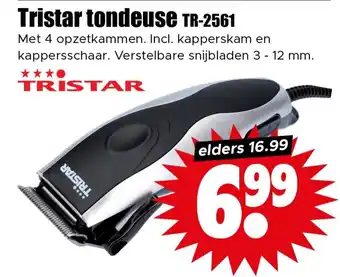 De prijs van de Tristar tondeuse TR-2561 kan ook teruggevonden worden hierboven op de pagina, samen met de datum van wanneer de aanbieding beschikbaar is. Ook kun je de prijzen in de huidige Dirk folder of op de Dirk website controleren. De aanbiedingen verzekeren je van het kopen van de Dirk producten voor de laagste prijs.