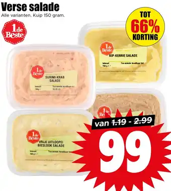 De prijs van de Verse salade kan ook teruggevonden worden hierboven op de pagina, samen met de datum van wanneer de aanbieding beschikbaar is. Ook kun je de prijzen in de huidige Dirk folder of op de Dirk website controleren. De aanbiedingen verzekeren je van het kopen van de Dirk producten voor de laagste prijs.