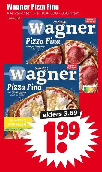 De prijs van de Wagner Pizza Fina kan ook teruggevonden worden hierboven op de pagina, samen met de datum van wanneer de aanbieding beschikbaar is. Ook kun je de prijzen in de huidige Dirk folder of op de Dirk website controleren. De aanbiedingen verzekeren je van het kopen van de Dirk producten voor de laagste prijs.