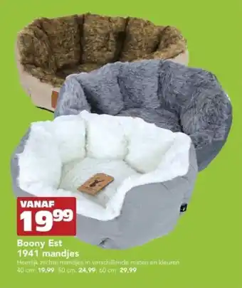 De aanbieding is verkrijgbaar in verschillende winkels, bekijk alle producten om de goedkoopste Boony Est 1941 mandjes te krijgen. Als je graag wilt kijken of het artikel met meer korting te koop is in een andere winkel, bekijk de categorie 'Tuin en Dier'. Wellicht vind je deze aanbiedingen ook interessant: Boony ‘Est 1941’ Mand Highland Sand 50cm, Boony Est 1941 Klimboom Quercus Polar wit- Krabpaal - Hout -60x60x151 cm & Boony Boony Lounger Chenille mand.