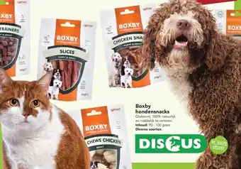 Discus biedt naast de Boxby hondensnacks een ruime collectie producten aan. Houd de wekelijkse Discus folder in de gaten om de beste aanbiedingen en acties te vinden. Naast Boxby hondensnacks, kunt u ook de volgende aanbiedingen vinden: Boxby Multivitamin - Hondensnacks - 140 g, Boxby Slices - Hondensnacks - Vlees 100 g & Boxby Fish Rolls - Hondensnacks - Vis 60 g.