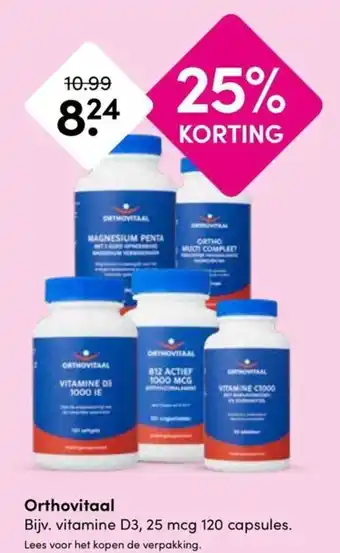 Orthovitaal Vitamine D3 25 mcg is een voedingssupplement met 120 capsules, speciaal ontwikkeld om te voorzien in de dagelijkse behoefte aan vitamine D3. Vitamine D3 is essentieel voor sterke botten en een goed werkend immuunsysteem. Met Orthovitaal Vitamine D3 krijg je een optimale dosering van 25 mcg per capsule. Profiteer nu van 25% korting op de normale prijs van €10.99 en betaal slechts €8.24. Dit product bevat tevens magnesium penta en vitamine C1000 voor een complete ondersteuning van je gezondheid. Neem dagelijks 1 capsule bij een maaltijd voor het beste resultaat. Lees voor gebruik de verpakking en houd je aan de aanbevolen dosering. Bestel nu Orthovitaal Vitamine D3 en investeer in je gezondheid!