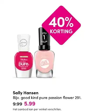 Ontdek de prachtige nagellakken van Sally Hansen met een korting van maar liefst 40%! Kies uit een breed scala aan kleuren en geef je nagels een trendy uitstraling. Of je nu op zoek bent naar een klassieke rode tint of een gedurfde blauwe kleur, Sally Hansen heeft het allemaal. De nagellakken van Sally Hansen staan bekend om hun hoge kwaliteit en langdurige formule. Met deze aanbieding kun je nu voordelig jouw nagellakcollectie uitbreiden en elke dag een nieuwe kleur uitproberen. Mis deze kans niet en profiteer van de 40% korting op geselecteerde Sally Hansen nagellakken. Het aanbod kan per winkel verschillen, dus wees er snel bij!