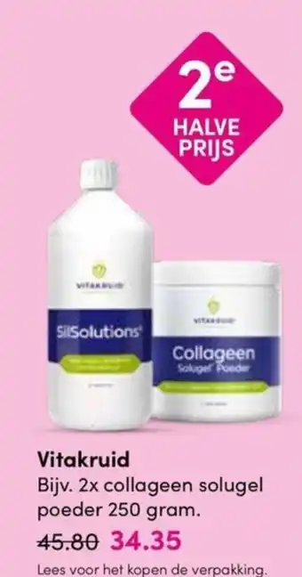De aanbieding is verkrijgbaar in verschillende winkels, bekijk alle producten om de goedkoopste Vitakruid te krijgen. Als je graag wilt kijken of het artikel met meer korting te koop is in een andere winkel, bekijk de categorie 'Drogist en Parfumerie'. Wellicht vind je deze aanbiedingen ook interessant: Vitakruid beautycomplex 60tb, Vitakruid biotine 2500mcg 50vcp & Vitakruid hyaluronzuur 150 capsules 60cp.