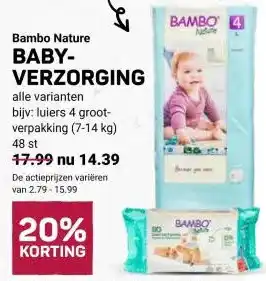 De Bambo Nature BABY- VERZORGING is momenteel met korting verkrijgbaar bij Ekoplaza. Hier vind je alle details over prijs, geldigheidsduur en actievoorwaarden. Vergeet niet om ook andere aanbiedingen en deals voor Bambo Nature BABY- VERZORGING te bekijken zodat je zeker weet dat je de beste prijs betaalt. De kortingsactie loopt van 22-04-2026 tot 28-04-2026. Is de actie inmiddels verlopen? Geen zorgen, vergelijk dan soortgelijke aanbiedingen of volg de productcategorie voor toekomstige prijsverlagingen. Zo koop je altijd met voordeel.Veelgestelde vragen over Bambo Nature BABY- VERZORGING