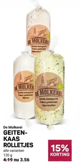 De Molkerei GEITEN- KAAS ROLLETJES korting bij Ekoplaza
