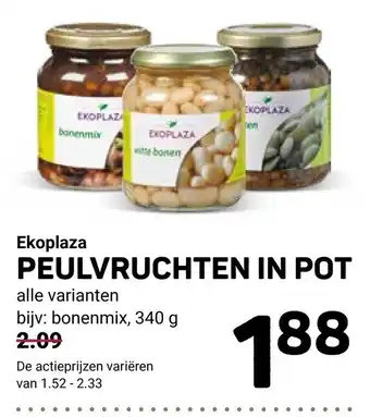 De prijs van de Ekoplaza peulvuchten in pot kan ook teruggevonden worden hierboven op de pagina, samen met de datum van wanneer de aanbieding beschikbaar is. Ook kun je de prijzen in de huidige Ekoplaza folder of op de Ekoplaza website controleren. De aanbiedingen verzekeren je van het kopen van de Ekoplaza producten voor de laagste prijs.