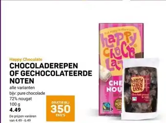 Happy Chocolate CHOCOLADEREPEN OF GECHOCOLATEERDE NOTEN aanbieding bij Ekoplaza – binnenkort verwacht