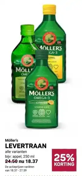 De aanbieding is verkrijgbaar in verschillende winkels, bekijk alle producten om de goedkoopste Möller's LEVERTRAAN te krijgen. Als je graag wilt kijken of het artikel met meer korting te koop is in een andere winkel, bekijk de categorie 'Supermarkt'. Wellicht vind je deze aanbiedingen ook interessant: Möller's Levertraan, Möller's Omega-3 Levertraan Citroen & Möller’s Omega-3 Levertraan Citroen.