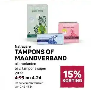 Koop Natracare TAMPONS OF MAANDVERBAND komende week met korting