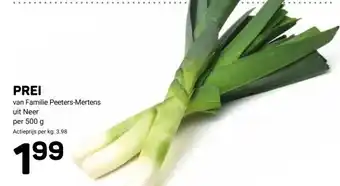 De aanbieding is verkrijgbaar in verschillende winkels, bekijk alle producten om de goedkoopste PREI te krijgen. Als je graag wilt kijken of het artikel met meer korting te koop is in een andere winkel, bekijk de categorie 'Supermarkt'. Wellicht vind je deze aanbiedingen ook interessant: Prei, Prei & Prei grof, spinazie of rode kool.