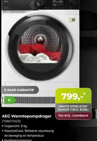 De AEG Warmtepompdroger is momenteel met korting verkrijgbaar bij EP Beerepoot. Hier vind je alle details over prijs, geldigheidsduur en actievoorwaarden. Vergeet niet om ook andere aanbiedingen en deals voor AEG Warmtepompdroger te bekijken zodat je zeker weet dat je de beste prijs betaalt. De kortingsactie loopt van 25-02-2026 tot 22-03-2026. Is de actie inmiddels verlopen? Geen zorgen, vergelijk dan soortgelijke aanbiedingen of volg de productcategorie voor toekomstige prijsverlagingen. Zo koop je altijd met voordeel.Veelgestelde vragen over AEG Warmtepompdroger