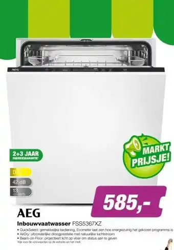Deze AEG FSS5367XZ 6000 QuickSelect Inbouw Vaatwasser is nu in de aanbieding bij EP. Op deze pagina vind je alle informatie over actuele prijzen, actievoorwaarden en looptijd. Vergelijk ook andere relevante aanbiedingen en acties rondom AEG FSS5367XZ 6000 QuickSelect Inbouw Vaatwasser, zodat je altijd de slimste keuze maakt. De aanbieding loopt van 23-02-2026 tot en met 05-03-2026. Is de actie verlopen? Geen probleem – vergelijkbare deals vind je altijd via deze pagina. Volg eventueel de productcategorie om automatisch op de hoogte te blijven van nieuwe aanbiedingen of prijsdalingen voor AEG FSS5367XZ 6000 QuickSelect Inbouw Vaatwasser.Veelgestelde vragen over AEG FSS5367XZ 6000 QuickSelect Inbouw Vaatwasser