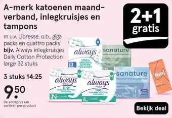 A-merk katoenen maand- verband, inlegkruisjes en tampons aanbieding bij Etos – binnenkort verwacht