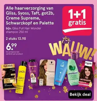 Alle haarverzorging van Gliss, Syoss, Taft, got2b, Creme Supreme, Schwarzkopf en Palette korting bij Etos