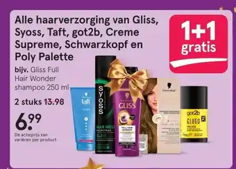 Koop Alle haarverzorging van Gliss, Syoss, Taft, got2b, Creme Supreme, Schwarzkopf en Poly Palette komende week met korting