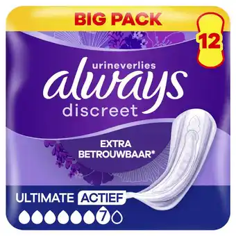 Nu in de aanbieding bij Etos: ALWAYS DISCR PADS ULT ACTIVE 12 - BP✅ Actie geldig van 9-03 t/m 15-03.