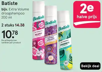 De aanbieding is verkrijgbaar in verschillende winkels, bekijk alle producten om de goedkoopste Batiste te krijgen. Als je graag wilt kijken of het artikel met meer korting te koop is in een andere winkel, bekijk de categorie 'Drogist en Parfumerie'. Wellicht vind je deze aanbiedingen ook interessant: Batiste, Batiste & Batiste.