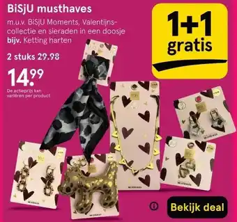 Etos biedt naast de BiSjU musthaves een ruime collectie producten aan. Houd de wekelijkse Etos folder in de gaten om de beste aanbiedingen en acties te vinden. Naast BiSjU musthaves, kunt u ook de volgende aanbiedingen vinden: BiSju sieraden, BiSjU haarklem & BiSjU Valentijn.