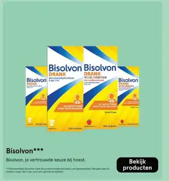 Etos biedt naast de Bisolvon een ruime collectie producten aan. Houd de wekelijkse Etos folder in de gaten om de beste aanbiedingen en acties te vinden. Naast Bisolvon, kunt u ook de volgende aanbiedingen vinden: Bisolvon 2-in-1, Bisolvon & Bisolvon.
