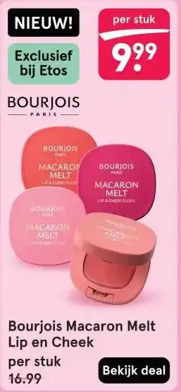 Nu in de aanbieding bij Etos: Bourjois Macaron Melt Lip en Cheek✅ Actie geldig van 16-02 t/m 22-02.