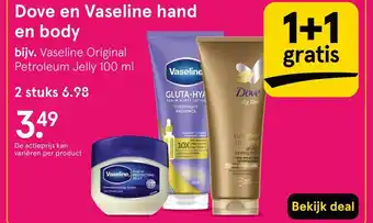 Dove en Vaseline hand en body 100 ml 1+1 gratis