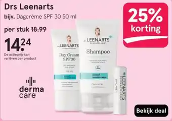 Ontdek de hoogwaardige Dagcrème SPF 30 van Drs Leenarts, een dermatoloog die gespecialiseerd is in dermacare. Deze dagcrème beschermt je huid tegen schadelijke UV-stralen en hydrateert intensief. Nu tijdelijk met 25% korting, waardoor je slechts €18.99 betaalt per stuk. De actieprijs kan variëren per product, dus wees er snel bij! Drs Leenarts staat bekend om haar effectieve en huidvriendelijke producten, die geschikt zijn voor alle huidtypes. Naast de Day Cream SPF30 biedt Drs Leenarts ook andere producten aan, zoals shampoo en lip care. Profiteer nu van deze deal en geef je huid de verzorging die het verdient met de producten van Drs Leenarts.