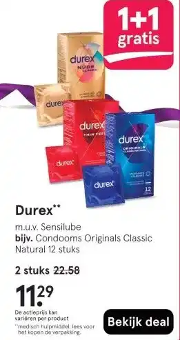 De aanbieding is verkrijgbaar in verschillende winkels, bekijk alle producten om de goedkoopste Durex te krijgen. Als je graag wilt kijken of het artikel met meer korting te koop is in een andere winkel, bekijk de categorie 'Drogist en Parfumerie'. Wellicht vind je deze aanbiedingen ook interessant: Durex, Durex & Durex.
