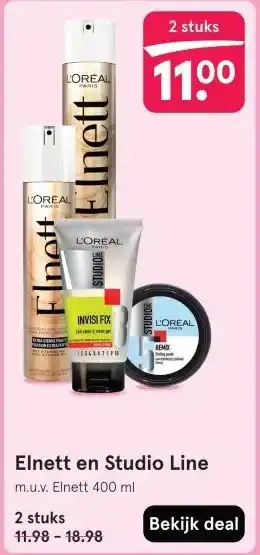 Etos biedt naast de Elnett en Studio Line een ruime collectie producten aan. Houd de wekelijkse Etos folder in de gaten om de beste aanbiedingen en acties te vinden. Naast Elnett en Studio Line, kunt u ook de volgende aanbiedingen vinden: Elnett en Studio Line, Elnett en Studio Line & Elnett en Studio Line.