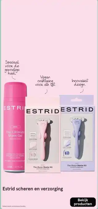 Etos biedt naast de Estrid scheren en verzorging een ruime collectie producten aan. Houd de wekelijkse Etos folder in de gaten om de beste aanbiedingen en acties te vinden. Naast Estrid scheren en verzorging, kunt u ook de volgende aanbiedingen vinden: Estrid scheren en verzorging, Estrid & Estrid.