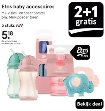 De prijs van de Etos baby accessoires kan ook teruggevonden worden hierboven op de pagina, samen met de datum van wanneer de aanbieding beschikbaar is. Ook kun je de prijzen in de huidige Etos folder of op de Etos website controleren. De aanbiedingen verzekeren je van het kopen van de Etos producten voor de laagste prijs.