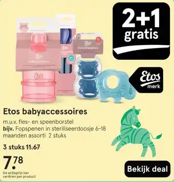 Etos biedt naast de Etos babyaccessoires een ruime collectie producten aan. Houd de wekelijkse Etos folder in de gaten om de beste aanbiedingen en acties te vinden. Naast Etos babyaccessoires, kunt u ook de volgende aanbiedingen vinden: Etos babyaccessoires, A-merk babyaccessoires & A-merk babyaccessoires.